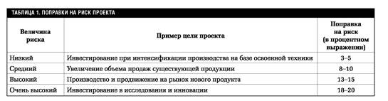 В общем случае, чем больше риск, ассоциируемый с проектом, тем выше должна быть величина премии, которая может определяться экспертным путем, по внутрифирменным процедурам, формальным или официальным методикам.
