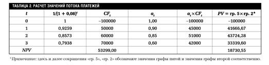 Расчет скорректированного потока платежей для данного случая приведен в табл.2.