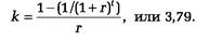 В целях упрощения будем полагать, что генерируемый проектом поток платежей имеет вид аннуитета. Тогда величина потока платежей CF для любого периода t одинакова и может быть определена из следующего соотношения: