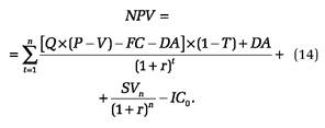 По условиям примера, значения нормы дисконта r и первоначального объема инвестиций IC 0 известны и считаются постоянными в течение срока реализации проекта.
