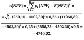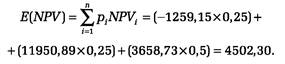 Определим среднее ожидаемое значение чистой приведенной стоимости NPV - величину Е (NPV ):