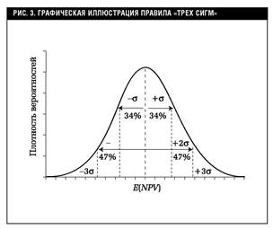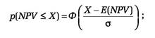 Теоретически, зная параметры нормального распределения Е и у, мы можем определить вероятность того, что случайная величина NPV будет меньше (больше) любого заданного значения Х из следующего соотношения: