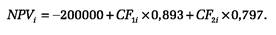 Значения NPVi были рассчитаны исходя из дисконтных множителей, равных 0,893 для первого и 0,797 для второго периода соответственно, т.е.: