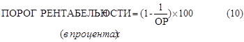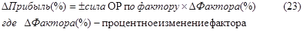 | Анализируемые факторы | Сила ОР | Компенсирующее процентное изменение объема реализации при изменении фактора на: | |||||