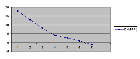 Рисунок 1. Спрос производителя на ресурс в условиях несовершенной конкуренции.