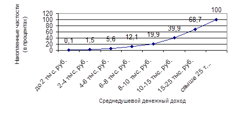 2.3 Анализ статистического распределения населения по величине среднедушевых денежных доходов
