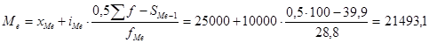 fМ0 , fМ0-1 , fМ0+1 – частоты (частости) соответственно модального, домодального и послемодального интервалов [1, с. 105].