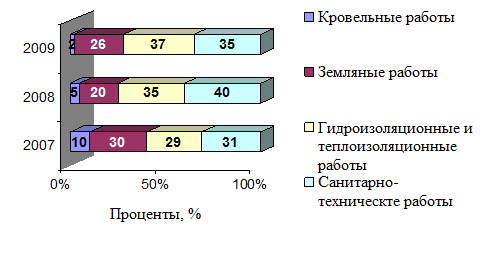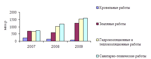 Были подробно рассмотрены структура затрат и прибыли от реализации всех видов работ, динамика темпов роста по данным показателям. Затем, сопоставив полученные данные с темпами роста выручки от реализации по видам работ, были сделаны соответствующие выводы о прибыльности (убыточности) каждого вида. По данным анализа, наиболее затратными и не прибыльными являются кровельные работы:
