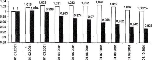 Рис. 2.2.3 Динамика реального валютного курса белорусского рубля в 2001 г.