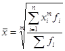 Для сгруппированных данных применяется формула средней арифметической взвешенной