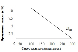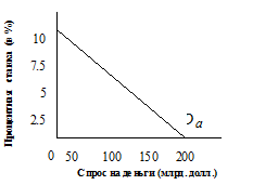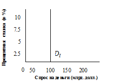 На рисунке 1а графически изображено отношение между спросом на деньги для сделок, и процентной ставкой. Поскольку спрос на деньги для сделок зависит от уровня номинального ВНП и не зависит от процентной ставки, он изображён в виде вертикальной прямой. Для простоты мы предположили, что необходимое для сделок количество денег не связано с изменением ставки процента.