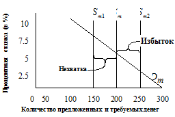 На рисунке 2 приведены типичные кривые предложения и спроса денег.