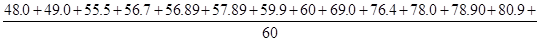 | 30.9 | 12.1 | 55.5 | 87.7 | 9.43 | 21.1 | 98.8 | 34.67 | 25.0 | 12.34 |