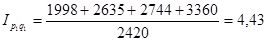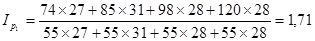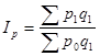 Индекс цен – это индекс качественного показателя. Индексируемой величиной будет цена товара, так как этот индекс характеризует изменение цен. Весом будет выступать количество произведенных товаров. Умножив цену товара на его количество, получаем величину, которую можно суммировать и которая представляет собой показатель, соизмеримый с другими подобными ему величинами. Индекс цен определяется по следующей формуле: