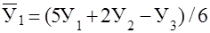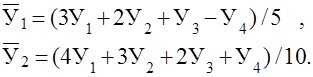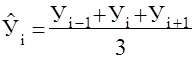 Недостаток методики сглаживания скользящими средними состоит в условности определения сглаженных уровней для точек в начале и конце ряда. Получают их специальными приемами – расчетом средней арифметической взвешенной. Так, при сглаживании по трем точкам выровненное значение в начале ряда рассчитывается по формуле 12: