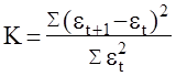выполняется проверка на автокорреляцию по критерию Дарбина – Уотсона. Если значение К близко к 2 , то данный ряд отклонений оставляют без изменений. Если же К заметно отличается от 2 , то по такому ряду находят параметры уравнения авторегрессии по формулам 30: