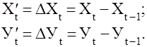 2. Корреляция первых разностей . От исходных рядов динамики Х и У переходят к новым , построенным по первым разностям (формулы 33):