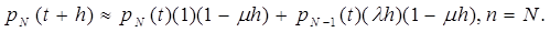 Прежде всего получим уравнение в конечных разностях для рn(t), т.е. для вероятности того, что в интервале времени t в системе находится n требований (клиентов). После этого при надлежащих условиях перейдем к пределам пи t®¥ и получим формулу для рn, соответстветствующих сиационарному режиму исследуемого процесса.