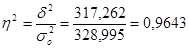 Коэффициент детерминации (0,9643) показывает, что вариация результативного признака (объёма выпуска продукции) на 96,43% происходит под влиянием вариации факторного признака (численности рабочих), а на 3,57% под влиянием прочих неучтенных факторов.