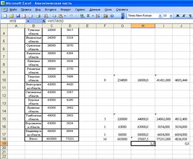 6).Определяем в ячейке Н55 коэффициент вариации: