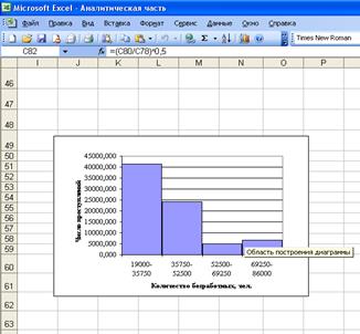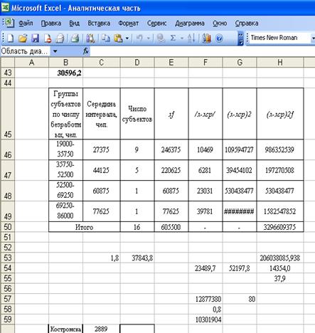 2).Определим величину интервала по среднему числу безработных в ячейке С35: