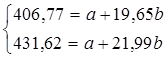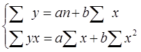 Для нахождения a и b используется метод наименьших квадратов: составляется система нормальных уравнений вида