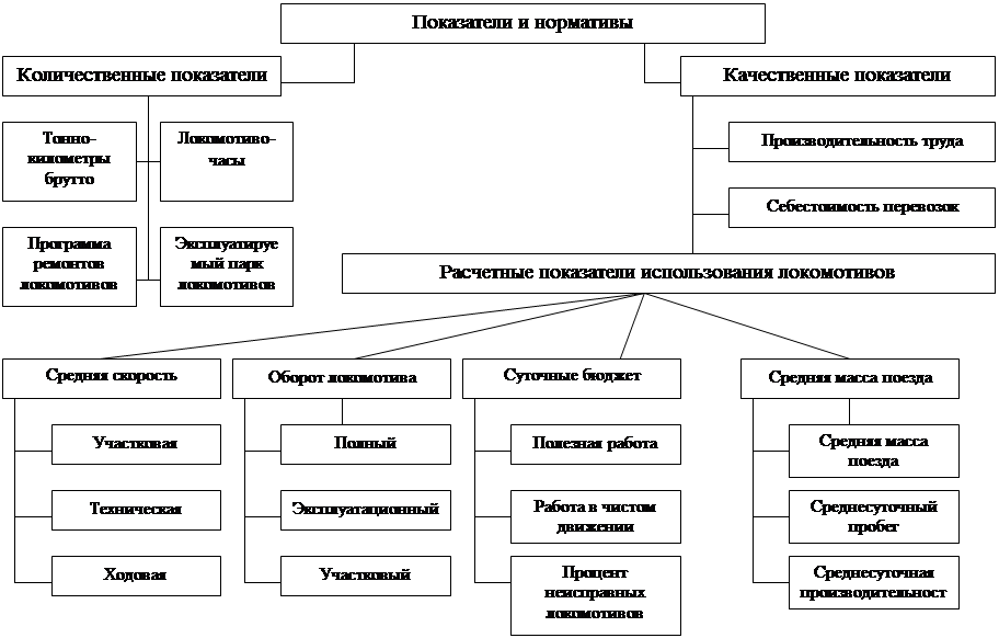 Показатели использования локомотивов служат и для планирования и оценки объема выполняемой работы и для оценки качества этой работы (рисунок 1.5).