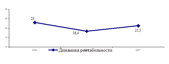 Наибольший прирост в процентном отношении за три года отмечается у элемента расходов – «прочие затраты», которые в 2006 году составили сумму 44505,0 тысячи рублей, однако при этом в прочих затратах учтен налог на имущество, который составил 41634,0 тысячи рублей. Таким образом, без учета налога на имущество, прочие затраты в 2007 году составили бы 2871,0 тысяча рублей, что вполне сопоставимо с данным показателем в 2005 и 2006 годах.