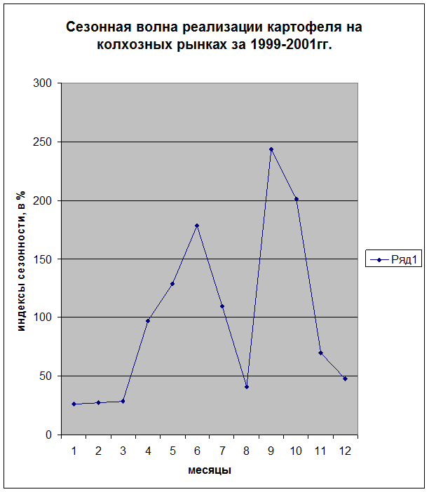 В заключении подведем итоги. Сезонные колебания – периодические колебания, которые имеют определенный и постоянный период, равный годовому промежутку. Существуют различные методы изучения сезонности. Как с предварительным определением и исключением общей тенденции, так и без предварительного выравнивания. Наиболее простой способ определения сезонной волны без предварительного выравнивания – метод простой средней. Точность данных зависит от выбранного метода изучения сезонности. При анализе данных находим индексы сезонности и получаем сезонную волну. Индекс сезонности – процентное отношение фактических внутригрупповых уровней к расчетным уровням, выступающим в качестве базы сравнения. (Гусаров В.М. «Теория статистики», ЮНИТИ 1998, стр.152 ). При использовании методов изучения сезонности появляется возможность проследить взаимоотношение сезонных колебаний и изучаемых показателей в зависимости от времени года.