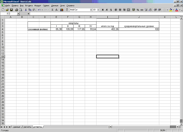 Сезонная волна определяется процентным отношением уровней поквартальных средних к средней квартальной.