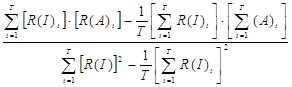| Период (Т) | Индекс (I) | А | Дох-ть индекса R(I)t (%) | Дох-ть акции R(А)t (%) | R(I)t*R(A)t | [(RI)] |