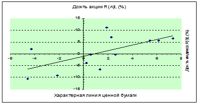 Если b > 1, то данную бумагу можно отнести к инструментам с повышенной степенью риска, т.к. ее цена движется в среднем быстрее рынка.