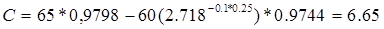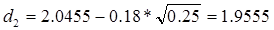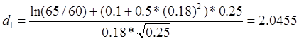 Текущая цена акции В составляет 65,00 ( S ). Стоимость трехмесячного опциона "колл" с ценой исполнения 60,00 ( X ) равно 6,20. Стандартное отклонение по акции В равно 0,18 ( s ) . Безрисковая ставка составляет 10 % ( r ).