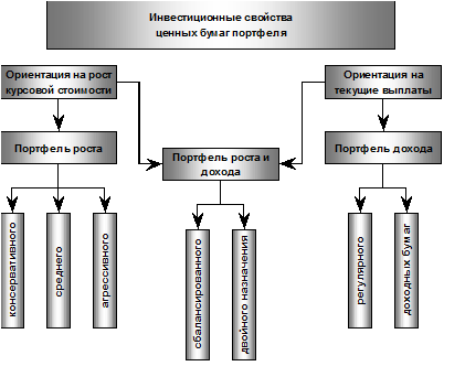 Эти типы портфелей, в свою очередь, включают целый ряд промежуточных разновидностей. Например, в рамках портфеля роста могут быть выделены: портфель консервативного роста, портфель среднего роста, портфель агрессивного роста.