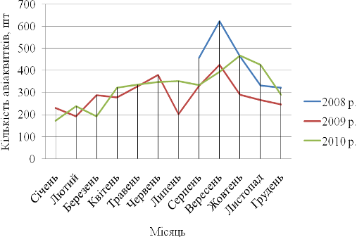 - досліджено об’єми продажу авіаперевезень та туристичних путівок, популярність країн відпочинку;