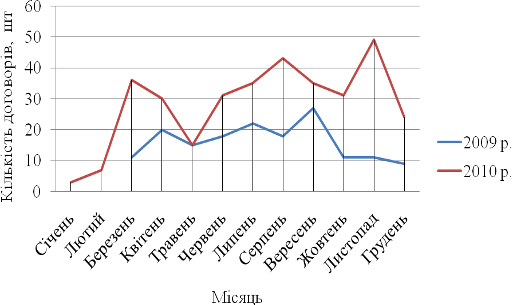 При розгляді зовнішнього середовища підприємства, що складається з різних компаній: туристичних операторів, авіакомпаній, страхової компанії, фінансових установ, та інших, була відмічена можливість зниження кількості постачальників авіаційних послуг, тобто підписання прямого договору з авіакомпаніями без участи ТОВ «Аквавіти», що збільшило б прибуток підприємства. Проаналізувала динаміку продажу авіаційних квитків та туристичних договорів.