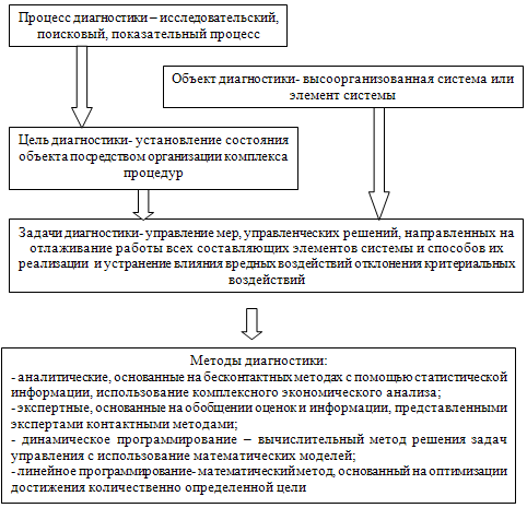 Согласно Л.А. Костирко и Ю.М. Бахрамову, "диагностика экономической системы - это совокупность исследований по определению целей функционирования предприятия, способов их достижения и выявления недостатков" [14, с. 45].