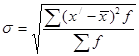 - середнє арифметичне інтервального ряду розподілу, f – частота.
