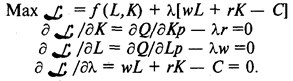Решение об объеме спроса на труд, максимизирующем прибыль работодателя, может быть получено с помощью максимизации функции Лагранжа для задачи максимизации выпуска при заданных издержках: