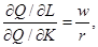 ¶p/¶L = ¶Q/¶Lp – ¶С/¶L = MPL p – MCL = pMRL – w = 0.