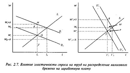 Таким образом, при снижении эластичности предложения труда налоговое бремя все в большей степени ложится на работников, а в случае совершенно неэластичного предложения труда налоговая нагрузка полностью приходится на работников.
