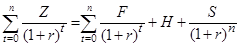 + (Wn + Fn ) / (1+r)n + H + S / (1+r)n