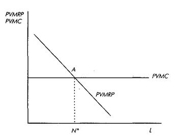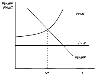 Для каждого потенциально нанятого работника, то кривая PVMC отражает текущую стоимость предельных издержек на труд, или совершенно эластичное