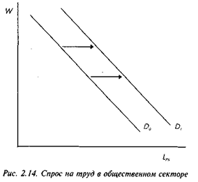 Поскольку спрос на услуги общественного сектора менее эластичен по цене, чем спрос на товары и услуги частного сектора, то кривая спроса на труд в общественном секторе, как правило, будет менее эластична, чем кривая спроса на труд в частном секторе.