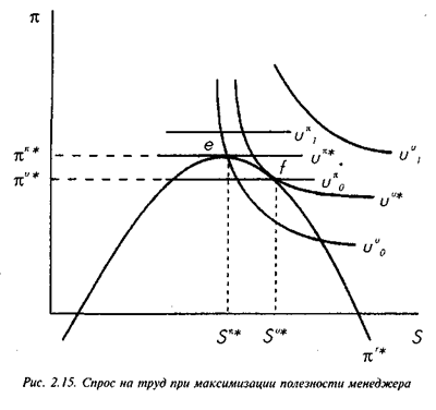 Следовательно, если профессионального менеджера заставляют максимизировать прибыли в точке е, он окажется на уровне полезности uu 0 < uu *. Аналогично, поскольку владелец-менеджер не извлекает полезности из найма персонала сверх необходимого для максимизации прибыли, он окажется на уровне полезности up 0 в точке f если будет вынужден нанять Su *>Sp *.