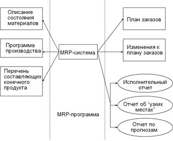 На практике MRP-система представляет собой компьютерную программу, которая логически может быть представлена при помощи следующей диаграммы: