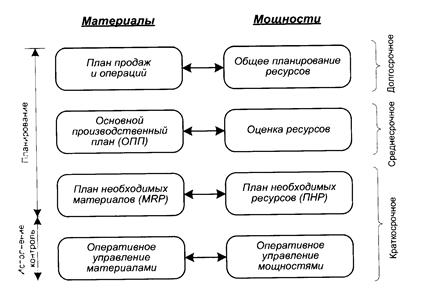 MRP системы базируются на планирование материалов для оптимальной организации производства и включают непосредственно функциональность MRP, функциональность по описанию и планированию загрузки производственных мощностей CRP (Capacity Resources Planning) и имеют своей целью создание оптимальных условий для реализации производственного плана выпуска продукции.