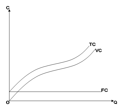 Поскольку переменные затраты (VС) зависят от выпуска продукции, то чем больше планируется выпустить продукции, тем больше для этого нужно произвести затрат. Если же ничего не производится, то и затраты отсутствуют. Таким образом, величина переменных издержек находится в прямой положительной зависимости от объема выпущенной продукции и на графике (см. рис.1) представляет собой кривую, выходящую из начала координат.