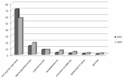 Рис. 2. Структура малого и среднего предпринимательства по отраслям в 2009 году