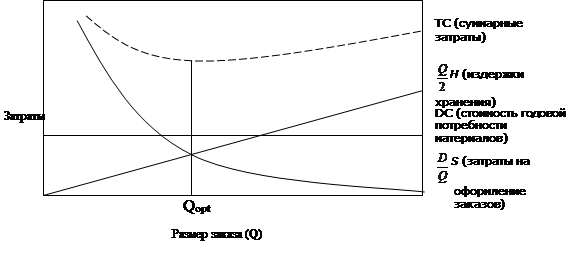 Таким образом, наличие на предприятии больших запасов создает уверенность в бесперебойной работе, снижает транспортно-заготовительные расходы, а также потери, связанные с простоем предприятия, но в то же время отвлекает из оборота предприятия денежные средства, увеличивает затраты на хранение и содержание запасов. Это противоречие приводит к необходимости установления их оптимального размера.